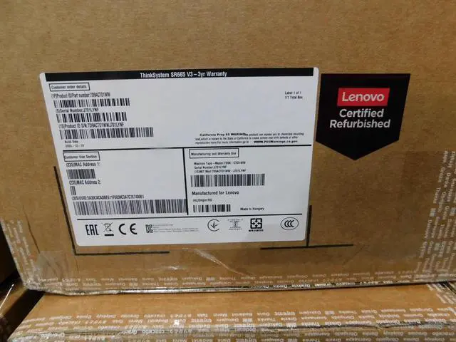 ThinkSystem SR665 V3 2x EPYC 9374F, 2x 64GB (4X77A77032), 1x 8-BAY 2.5" Backplane FRU: 02YE087, 2x Riser: FRU: 03GX224 & FRU: 03GX273, 2x 1800W PSU FRU: 03LC046, 6x 21K-Fan Module FRU: 03KH643, No Rails *3 Year warranty!*