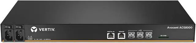 The Vertiv Avocent ACS8000 Advanced Console Server system integrates connectivity features for secure in-band and out-of-band network remote management of IT assets from anywhere in the world. It includes a 16 port console server and dual AC power supply. The serial console system helps maximize IT asset productivity while providing scalability and reducing operational costs for a range of applications from insurance and financial institutions, to education, government, healthcare, oil and gas, the military, retail/wholesale and more.