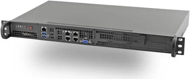 The Supermicro SuperServer 5018D-FN4T rackmount server features the Intel Xeon D-1541 8-Core Processor with two 10 Gb Ethernet ports (10GBase-T), two additional Gigabit ports, and a dedicated IPMI port. The entire configuration is enclosed in a compact ( 9.8" depth) 1U rackmount enclosure with front-access I/O ports. The Intel Xeon D provides a power-efficient platform that consumes less power and generates less heat than conventional server platforms. This server is suitable for Cloud and Virtualization, networking and other embedded applications.