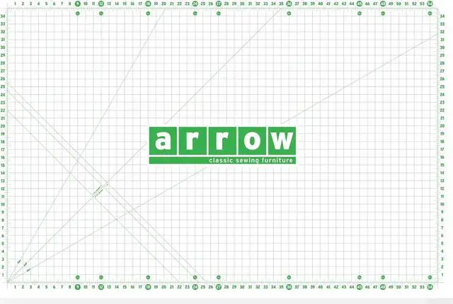 Originally designed to fit Arrow's Millie Cutting Table, the Mat-M is a heavy duty, pinnable mat with one-inch quilter's grid for accurate rotary cutting, high-visibility 30, 45, and 60-degree angle markers, and 1/4, 1/3, 1/2, and one-yard increments marked for convenient measurements.