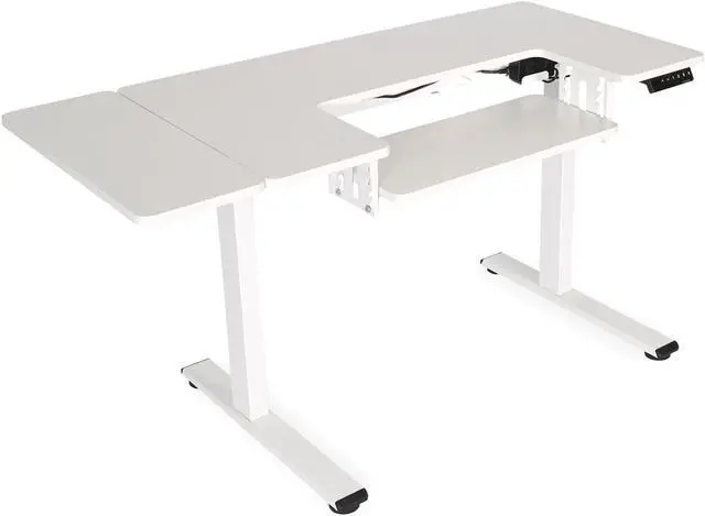 The Arrow Sewing Eleanor Sewing Table is expertly designed to enhance your sewing, serging, and cutting experience. Featuring electric height control with four programmable memory settings, this table adjusts smoothly between 28.7" and 48.4", allowing for both sit and stand work positions. The multi-position sewing platform accommodates most machines up to 40 lbs., ensuring compatibility and stability. A removable side extension leaf offers additional workspace for larger projects, while sturdy steel legs provide exceptional durability and easy mobility. Manufactured by Arrow Sewing Cabinet, this table is ideal for dedicated hobbyists and professionals in the arts and crafts industry. Enjoy peace of mind with a 5-year warranty on the frame and motor, and a 2-year warranty on electronics. Elevate your sewing setup with this versatile and reliable sewing table.
