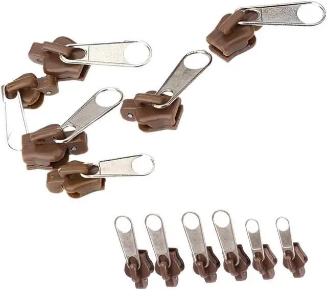 Replaces Zipper Sizes: 3, 4, 5, 8, 8C, 10. 6 Zippers Metal - Brown