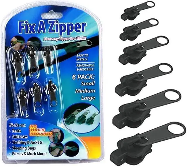 Fix-A-Zipper, the ultimate solution for all your zipper repair needs. Whether it's a broken zipper on your favorite jacket, pants, bag, or tent, Fix-A-Zipper is here to save the day, offering a quick and easy fix that eliminates the need for costly repairs or replacements. Fix-A-Zipper is a compact and portable zipper repair kit that includes everything you need to restore functionality to your zippers. It comes with a selection of different-sized replacement zipper sliders and a handy installation tool. The sliders are made from durable materials, ensuring long-lasting performance and reliability.