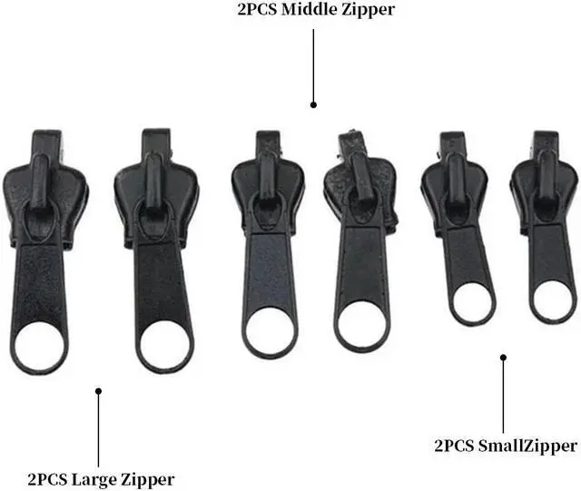 Includes 6 zipper fasteners with 3 sizes. To use Fix A Zipper, first ensure that the zipper area is clean and free of any debris. Choose the appropriate size of Fix A Zipper for your zipper, as they come in various sizes to fit different types. Insert the Fix A Zipper slider onto one side of the zipper track, making sure it fits snugly and aligns with the teeth of the zipper. Gently slide the Fix A Zipper along the track to close the zipper, ensuring it moves smoothly and secures the zipper teeth together.