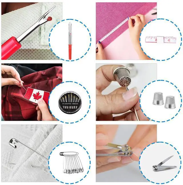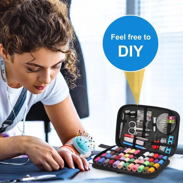 - Comprehensive Tools: Includes needles, threads, scissors, seam ripper, thimble, pins, buttons, and more for all sewing and mending needs.