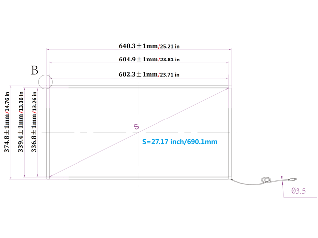 - 3- Design for standard 27 inch monitor, you can check drawing on the left. S is the diagonal length of display active area;