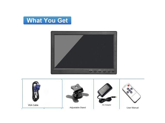 10.1 inch Security Monitor, 1024x600 Resolution Small TV Portable Monitor with Remote Control with Built-in Dual Speakers HDMI VGA BNC Input for Gaming CCTV Raspberry Pi PC