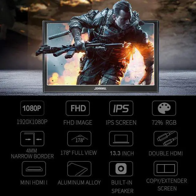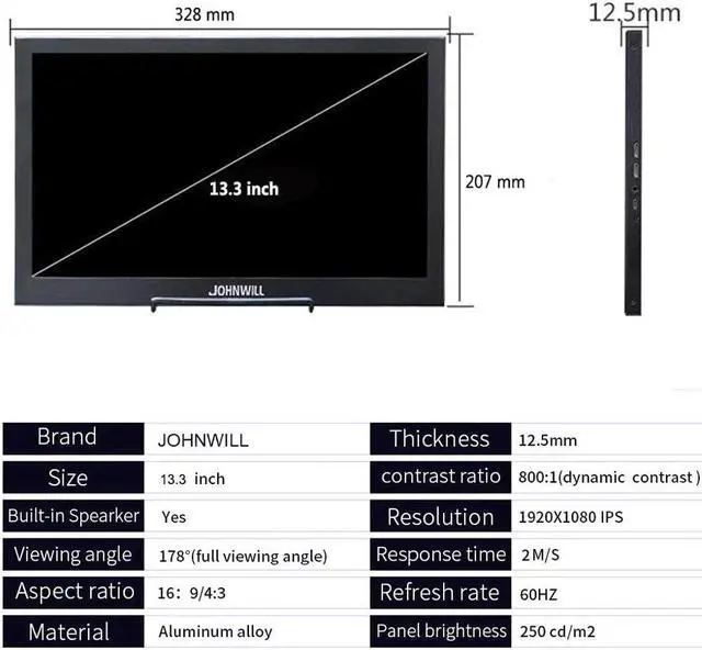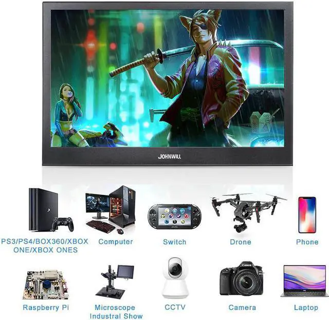 It can be used on PS3,PS4,Xbox360,wiiu switch,perfect for gaming.It can also be used as your second computer monitor display,copy and extended screen and so on.It is easy to be supported by the holster. This display case is made of metal. Headphone jack available The 13.3 inch weight of this project is 0.685kg/1.7 pounds net weight. The 13.3 inch weight of this project is 0.935 kg/2.06 pounds net weight.