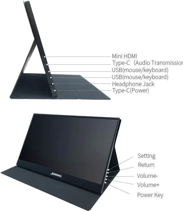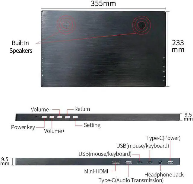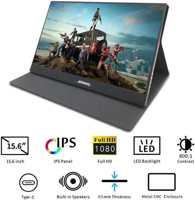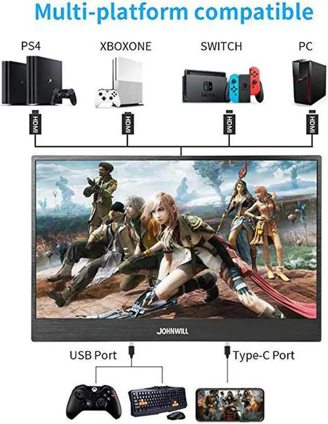 15.6 inch portable Gaming monitor Use USB C Technology : Two USB-C interfaces:One for powered and the other interface for data audio transmission Compatible With Connecting Various Devices Such as: Laptop, Mini PC, MAC mini Macbook Surface Book Raspberry Pi 3 2 1, XBOX 360