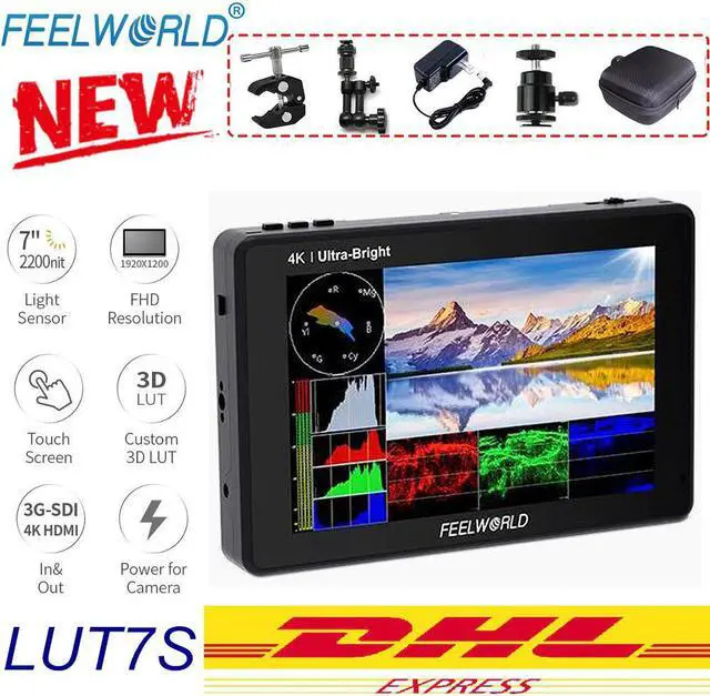 2200nit Daylight Viewable7" 1920 x 1200 monitor not only has the resolution and pixel density to make every shot look amazing, the high bright 2200nit screen at almost 4 times the brightness of conventional field monitors lets you shoot outdoors without reflections washing out your image. This makes it easy to see outdoors without a hood, making it easy for outdoor shooting in bright daylight!