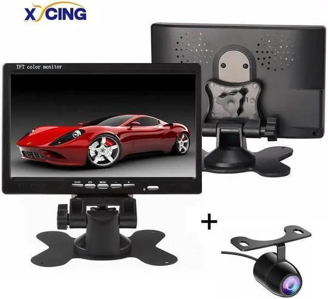 Specification : Colour : Black resolution of the screen:480x234 Monitor Display Size : 7" System : PAL & NTSC Monitor Dimension : About 173 x 114 x 14mm Stand Dimension : show in the picture Package size : 25 x 14.6 x 8.5cm / 9.8"L x 5.7"W x 3.3"H Power requirement : DC 12V Power cable length : Approx. 207cm Monitor cable length : Approx. 55cm The other items : please check the manual Features : -This is the new arrival of the 7" Color TFT LCD Car Rearview Monitor with 2 dual video input. -Comes with an IR remote controller for a easy operation. -Work perfectly with car rearview cameras . -Universal compatible for all car models. -2 ways to install: standing or mounting. -Support Car DVD/surveillance camera/STB/satellite receiver/other video equipments. -Theres adjustment for brightness, color and contrast plus format settings for 4:3 or 16:9 sources. -Start up and close itself automatically. -Synchronously display the video from rear view camera when you're backing your car. Package includes : 1 x 7" TFT LCD Color Car Monitor Black 1 x remote controller 1 x Power Cable 1 x Bottom Pad 1 x Stand 1 x Cover 1 x User Manual