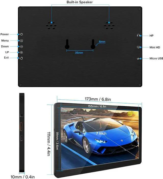 7-inch Computer Display Portable Game Monitor 1024x600 Compatible 1920x1080 IPS LED Screen 16:9 450cd/m2 Speakers USB Wall Mounted for Raspberry Pi PS4 Xbox 360 PC Win MAC OS