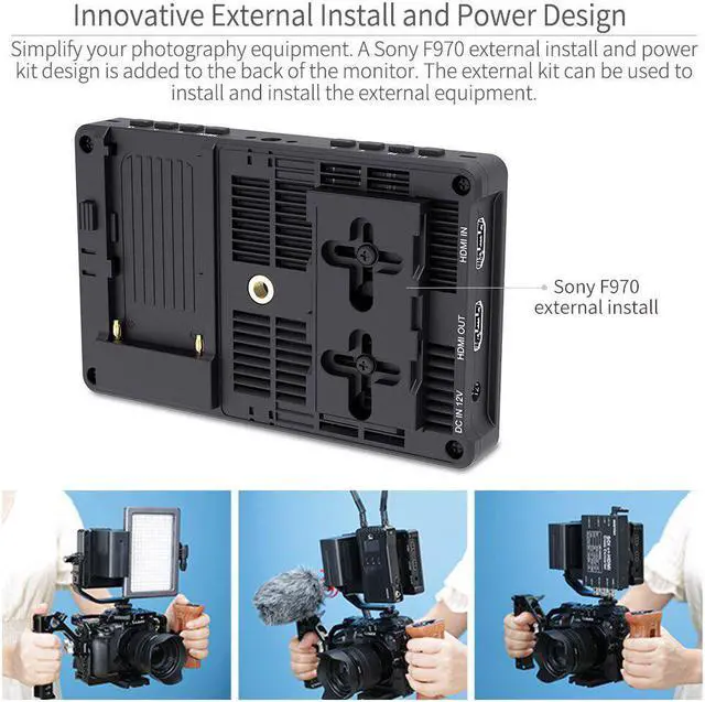 5.5" LCD, 1920x1080 ResolutionHigh resolution, brighter full of colorsThe F5 Pro provides a sharp image, ideal for focus pulling and image analysis on set and in the field. With native 1920x1080 high resolution and 16:9 display, 500cd/m2 brightness, 1000:1 contrast ratio, delivers excellent detail, so you can enjoy sharper and richer colors image. The wide viewing angle of IPS 160 degrees is convenient for monitoring from multiple angles. follows the standard of REC-709 and calibrates each monitor so that it can eliminate the trouble of color cast.