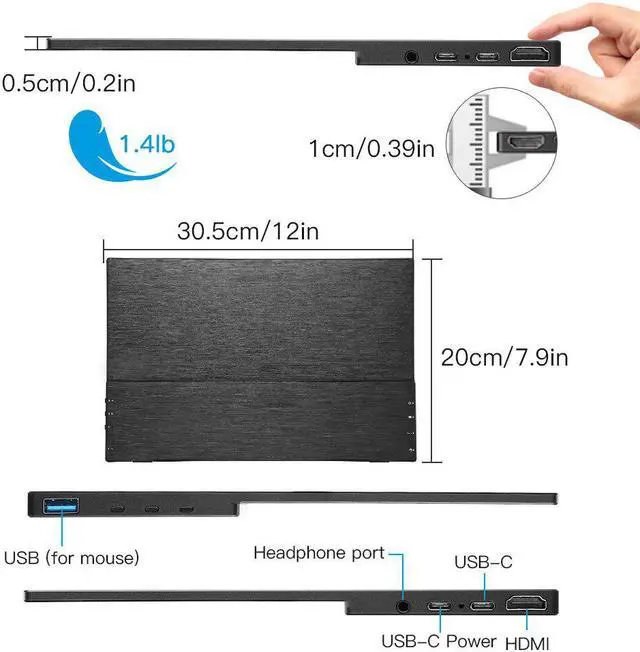 13.3" 4K LCD monitorFHD 3840X2160 high resolution; IPS panel; aspect ratio: 16: 9 (4: 3)