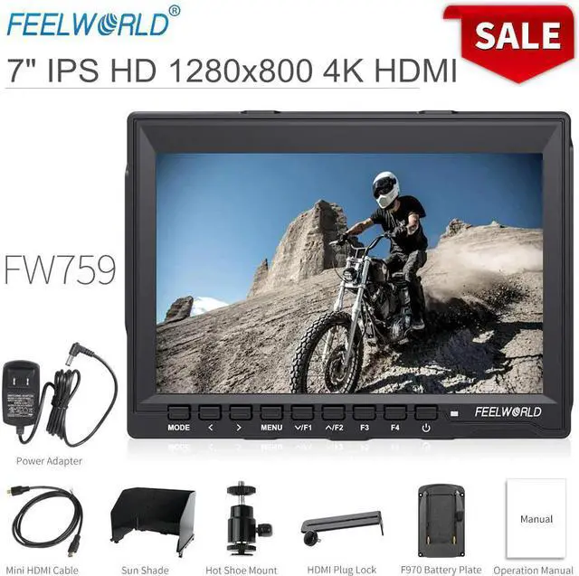 HD IPS True Color Screen FW759 field monitor with 7 inch wide color gamut LCD IPS panel, wide 178/178 degrees viewing angle, HD 1280x800 resolution, and brightness output of up to 400nit, so you will be able to see accurate, rich, consistent and bright images from any point of view.