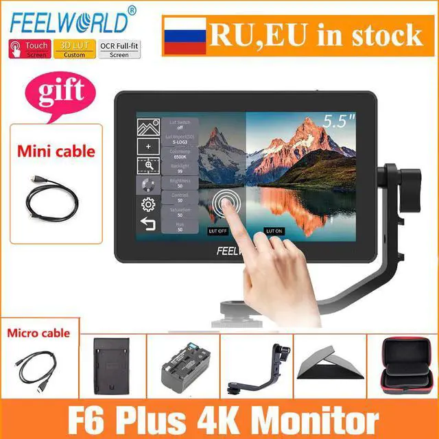 F6 Plus 5.5 Inch DSLR Camera Field Monitor 3D LUT Touch Screen Support 4K IPS FHD 1920X1080 with Tilt Arm