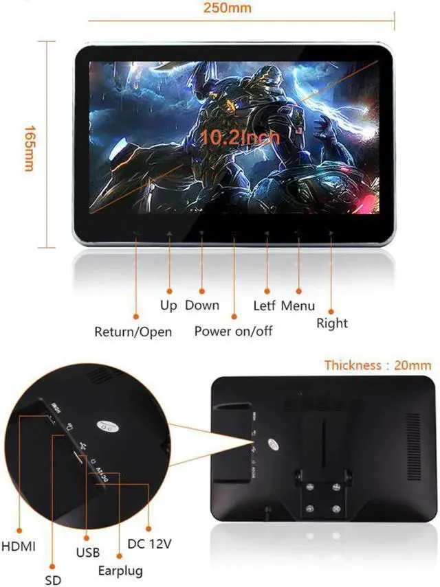 10.2 Inch Ultra-thin Car Headrest Multimedia MP4 MP5 Player HD