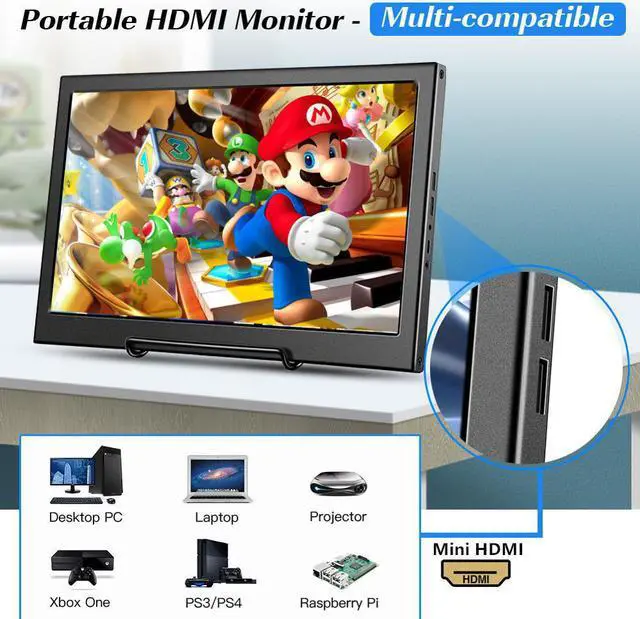Descriptions:1.The 13" IPS portable gaming monitor has 1920x1080 high resolution, 178 degress wide viewing angle, 300cd/m2 brightness, built-in loud speakers.
