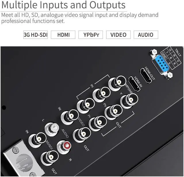 monitor is ideal for high end broadcast monitoring because they feature high quality focus assist function, also includes check field, image freeze, image flip, center marker, safe frame, color temperature adjust, assist users to accurately monitor when shooting, making and playing movies/ videos.