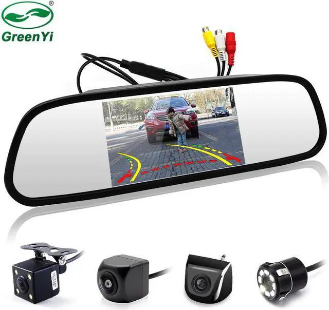 5 Inch Vehicle Interior Rearview Mirror Monitor With Backup Camera, Trajectory Parking Line and Starlight Night Vision