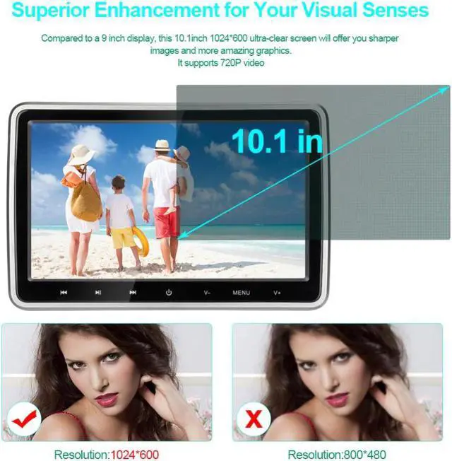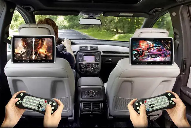 2x 10.1 Inch 1024*600 Car Headrest Monitor DVD Player USB/SD//FM/Game TFT LCD Screen Touch Button Support Wireless Headphone