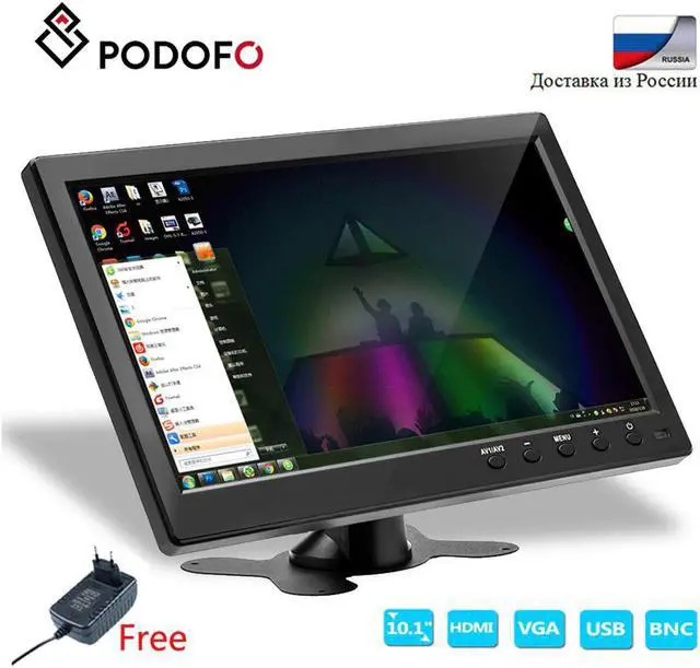 10.1" LCD HD Monitor Mini TV & Computer Display Color Screen 2Channel Video Input Security Monitor With Speaker/ BNC / AVI / VGA /