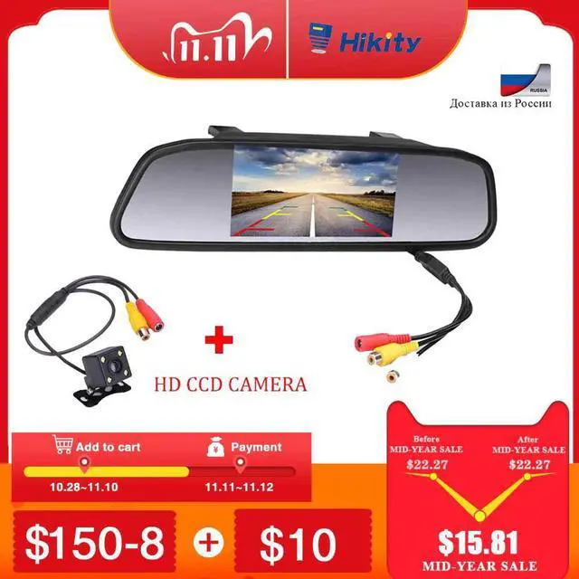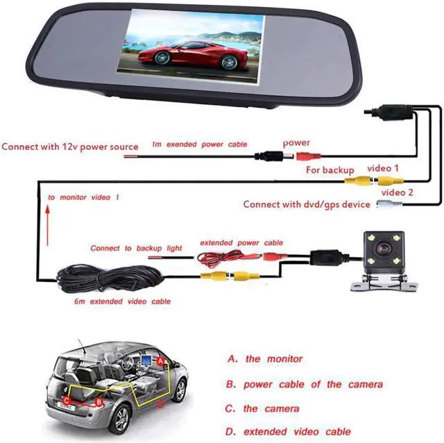 Car Auto 4.3'' TFT Car Parking Mirror Monitor 2 Video Input For Rear view Camera Waterproof Parking Assistance System