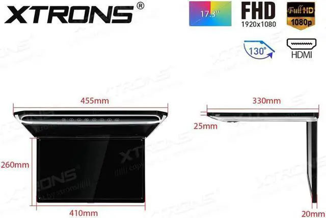 17.3" 16:9 Display Mode FHD Digital TFT Screen Ultra-Thin Touch Button Design Flip Down Car Monitor Car Roof Monitor Roof Mounted Monitor with Built-in Input & 1920*1080 FHD Resolution & True 1080P Video Support & 130 Degrees Rotating Screen & Positive and Negative Door Control Support & External Digital TV Receiver Support & Built-in IR/FM Transmitter