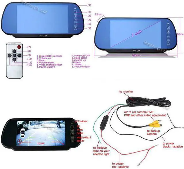 7 "TFT In Car monitor / rear view mirror LCD screen