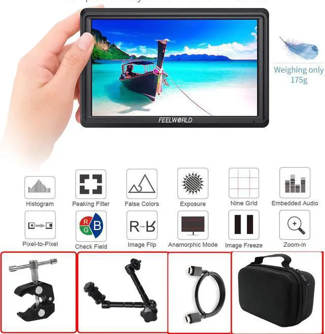 The FW568 provides a sharp image, ideal for focus pulling and image analysis on set and in the field. With native 1920x1080 high resolution and 16:9 display, 500cd/m2 brightness, 1000:1 contrast ratio, delivers excellent detail, so you can enjoy sharper and richer colors image, full-screen display uniform, no difference, no trailing. Its size, weight and resolution make it an attractive option for DSLR shooters looking to attach it straight to the camera.