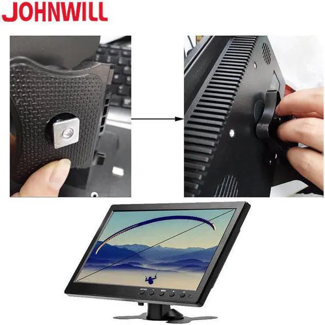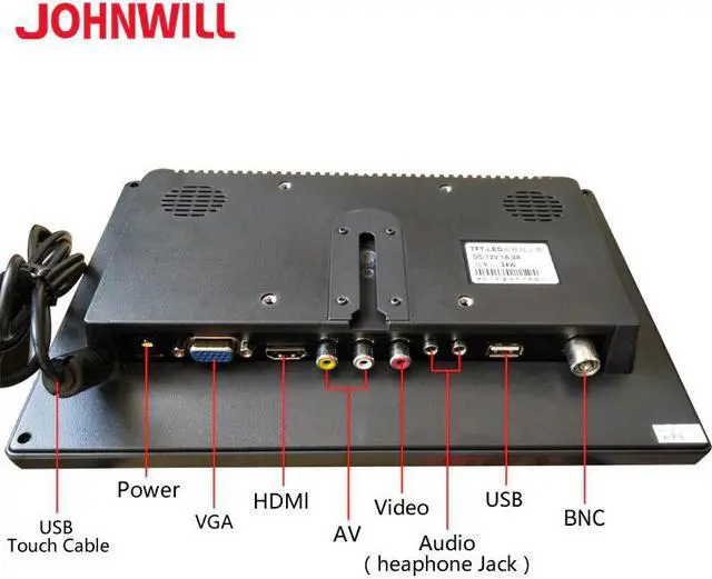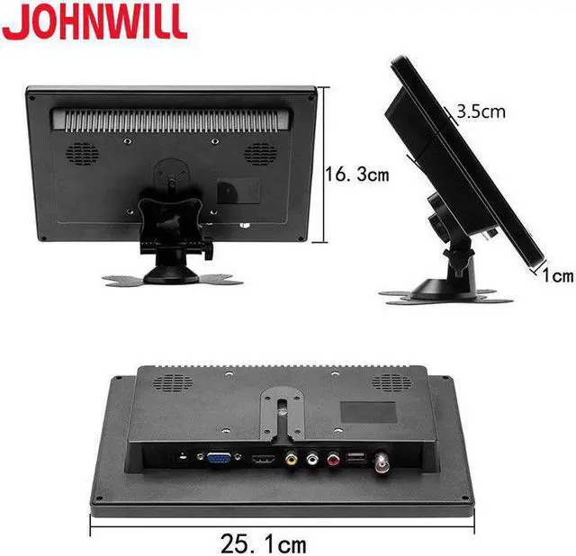 Function of keys: 1. "POWER": On / Off 2. "VOL-": Select this key to adjust volume "down" 3. "VOL+": Select this key to adjust volume "up" 4. "AV1/AV2": To switch the mode to AV1/AV2/VGA/ 5. "MENU": Press the key can circularly open menu Features: 1. 10.1 Inch Professional digital LED high-definition liquid crystal display with high-grade exterior paint and built-in speakers. 2. Adopts standard HD video input, support 1080P 3. Two way AV input, one TV input, one VGA input, one input,one USB port and 2 built-in speakers. 4. Suitable for cars, buses, airplanes, Bluetooth printer, intelligent industrial equipment, monitoring equipment,home security and so on.