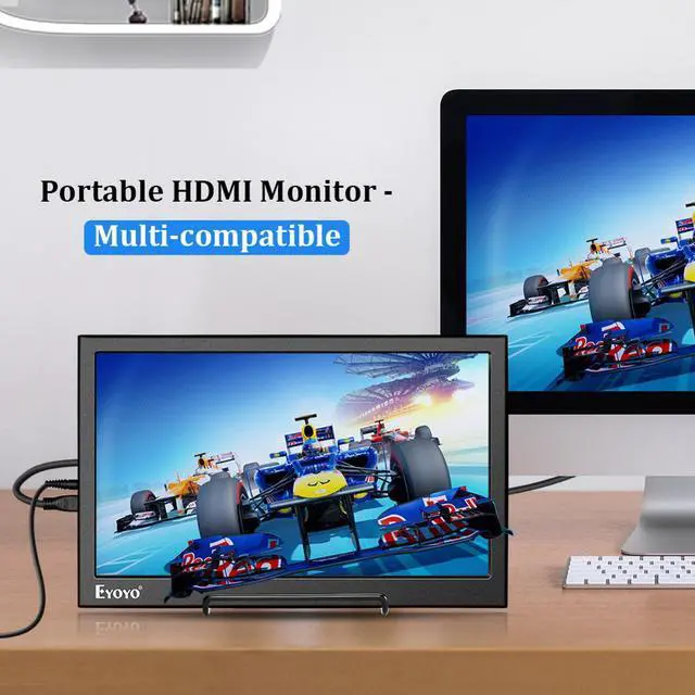 The 13" IPS portable gaming monitor has 1920x1080 high resolution, 178 degress wide viewing angle, 300cd/m2 brightness, built-in loud speakers.