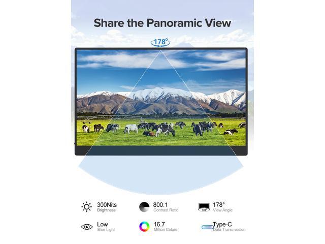 - Restore Real Colors: 15.6 inch IPS portable computer monitor with 1920*1080 Full HD resolution, 1000:1 contrast ratio, 300 nits brightness and HDR technology, to provide you with clearer, smoother, superior gaming/multimedia performance.