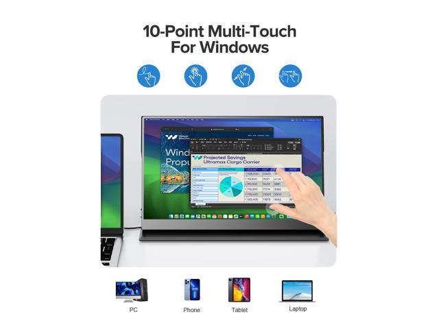 UPERFECT 15.6 Inch Touchscreen Portable Monitor FHD 1080P IPS 10-Point Touch Screen Monitor & Speakers, HDMI USB C Eye-Care Travel External for Laptop Computer PC Phone Switch, VESA & Smart Cover