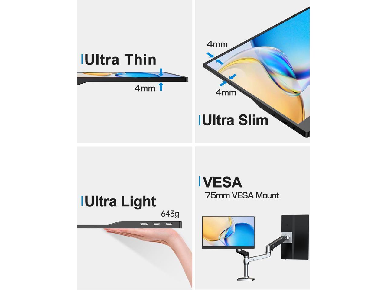 - VESA & Smart Cover: We've engineered the design to be ultra-thin and lightweight and narrow border, easily fits into a backpack for business trips.