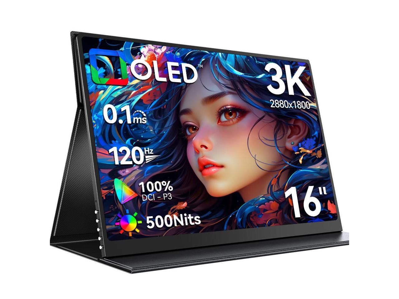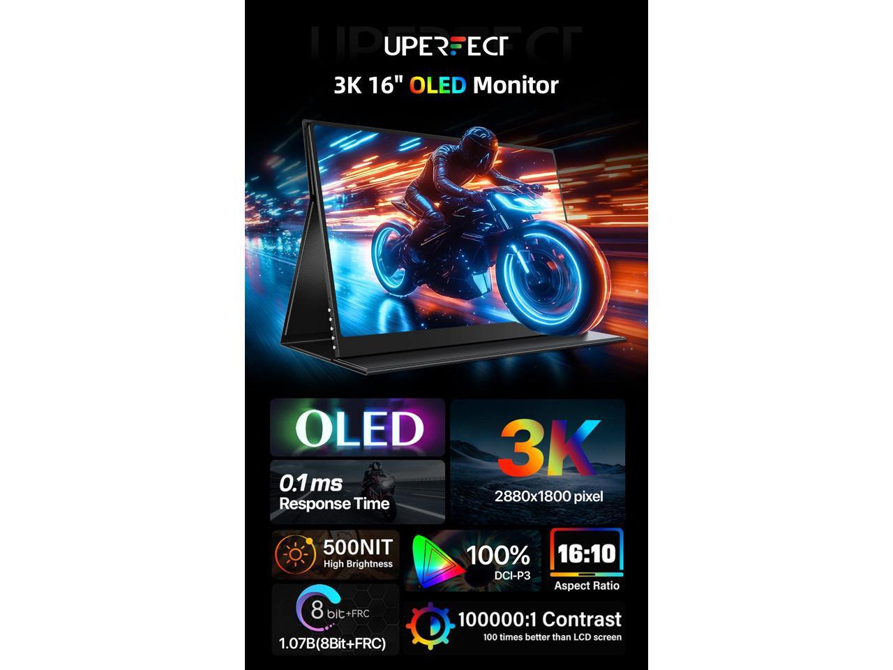 UPERFECT 16" OLED Portable Monitor - 3K 2880x1800, 120Hz, 0.1ms, 500 Nits, 100% DCI-P3, 100000:1 Contrast, Ultra-Slim Design for Laptops, Mini PCs, Phones, Game Consoles