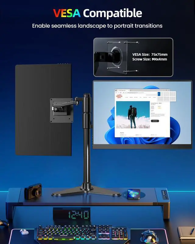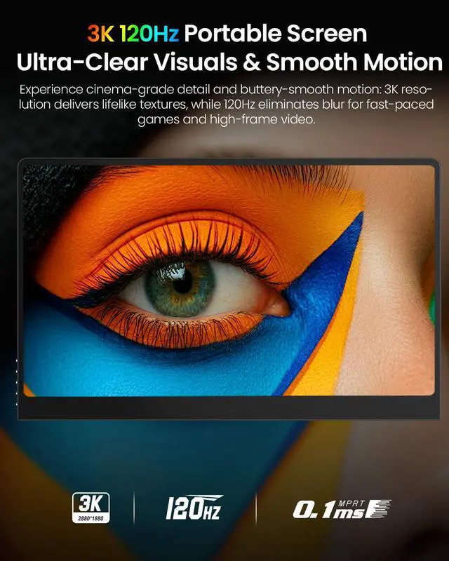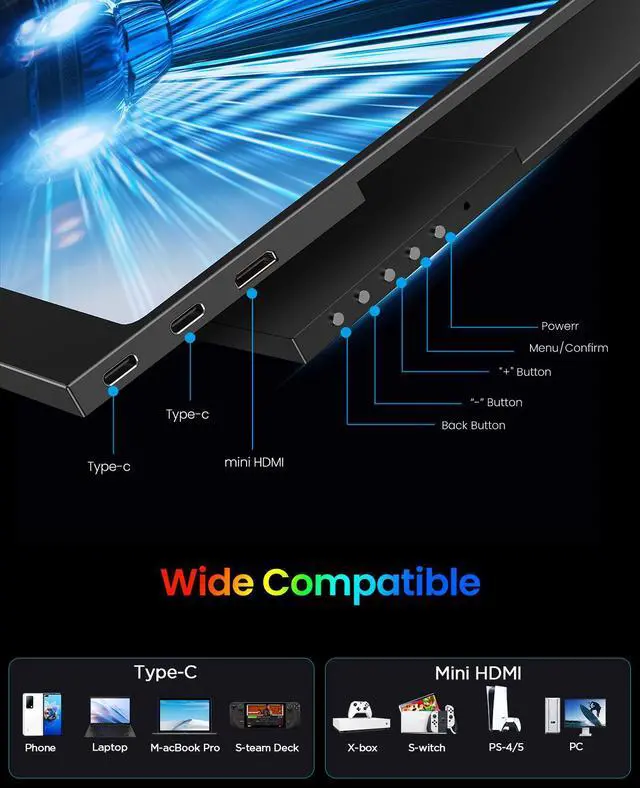 Ultra-Slim Full-Metal Design with Built-in Stand: At just 0.12" thin and 1.29 lbs, this premium full-metal portable monitor features a built-in stand and ultra-narrow bezel for ultimate portability. Compatible with laptop, PC, phone, PS5, Xbox, and Switch.