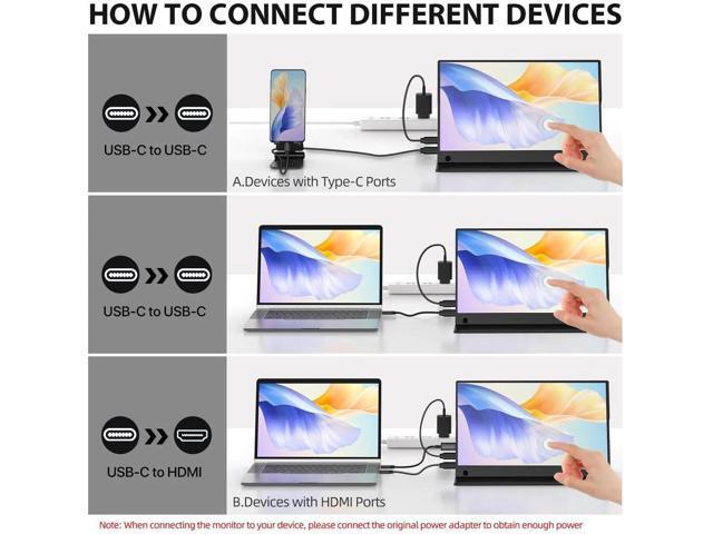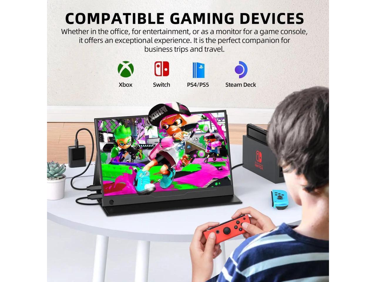 - With Type-C and Mini HDMI ports, this portable monitor easily connects to laptops, Android devices, PCs, PS4, PS5, Nintendo Switch, and more. Ideal for screen extension or gaming on-the-go.