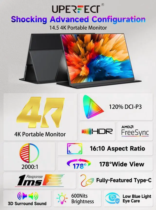 Weighing only 1 lb and just 0.2 thin, this portable monitor features a lightweight aluminum body and a leather smart cover that doubles as a stand for easy travel and setup.