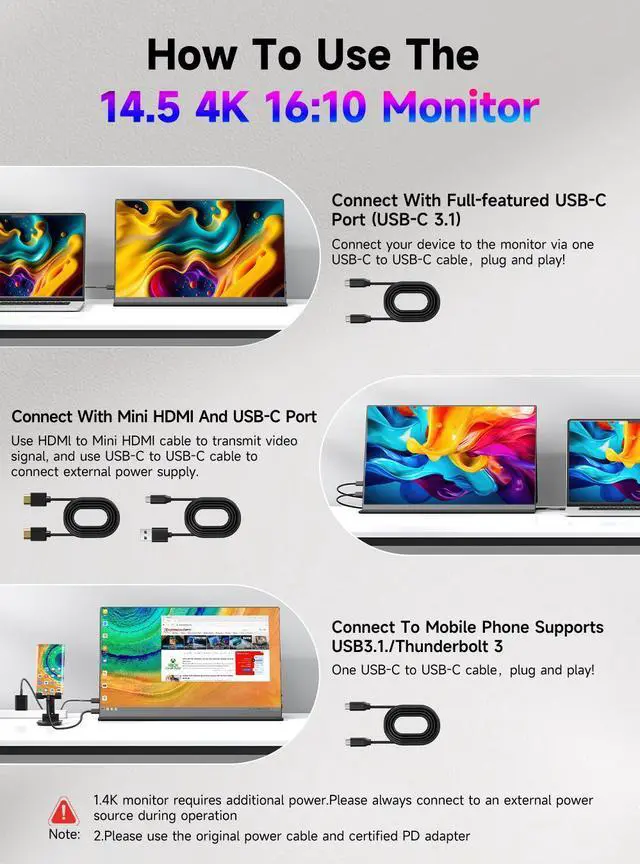 Connect effortlessly to laptops, tablets, phones, cameras, and consoles using dual USB-C and Mini HDMI portsno drivers needed for instant compatibility.