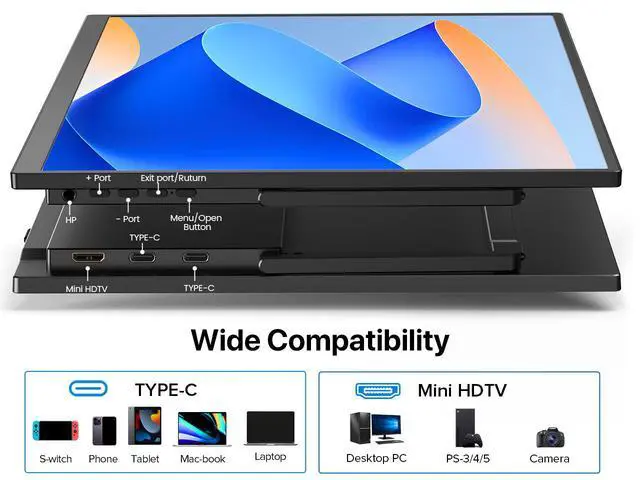 Plug & Play with Broad Compatibility: Equipped with full-function USB-C and Mini HDMI ports, this monitor connects seamlessly to laptops, mini PCs, MacBooks, smartphones, and gaming consoles like Switch, Xbox, and PS4/5. No driver installation needed.