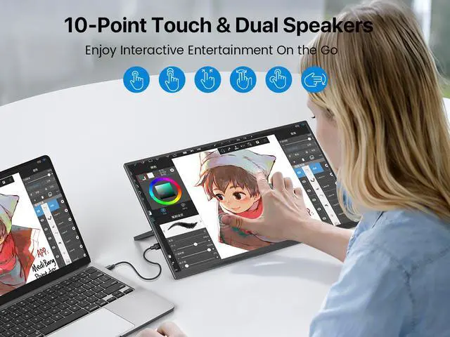 10-Point Precision Touchscreen: Experience smooth and responsive control with lag-free 10-point multi-touchtap, swipe, and zoom effortlessly without a mouse. Fully compatible with Windows laptops, Android phones, and tablets via USB-C or Mini HDMI. Just plug and play to activate touch functionality instantly, making it ideal for work, gaming, and creative tasks on the go.