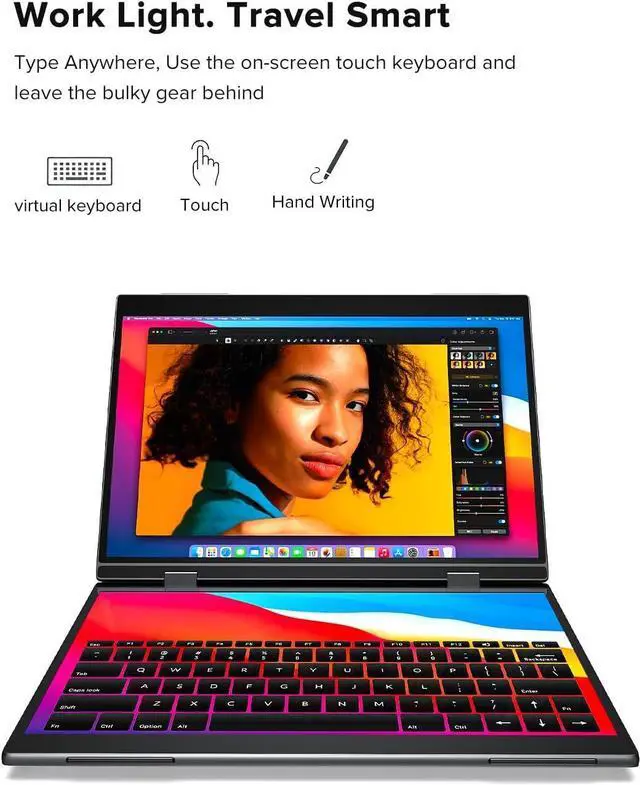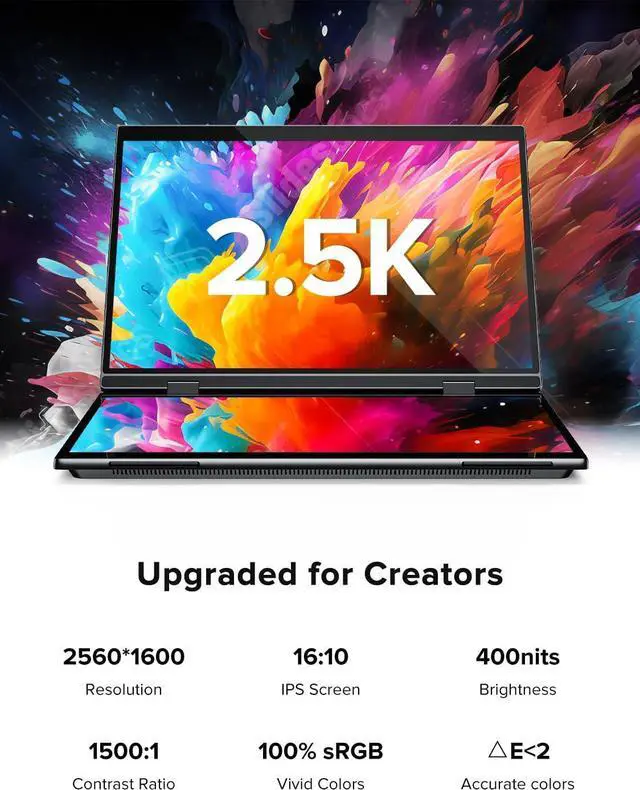 Two screens can be connected through a type-c or HDMI cable.