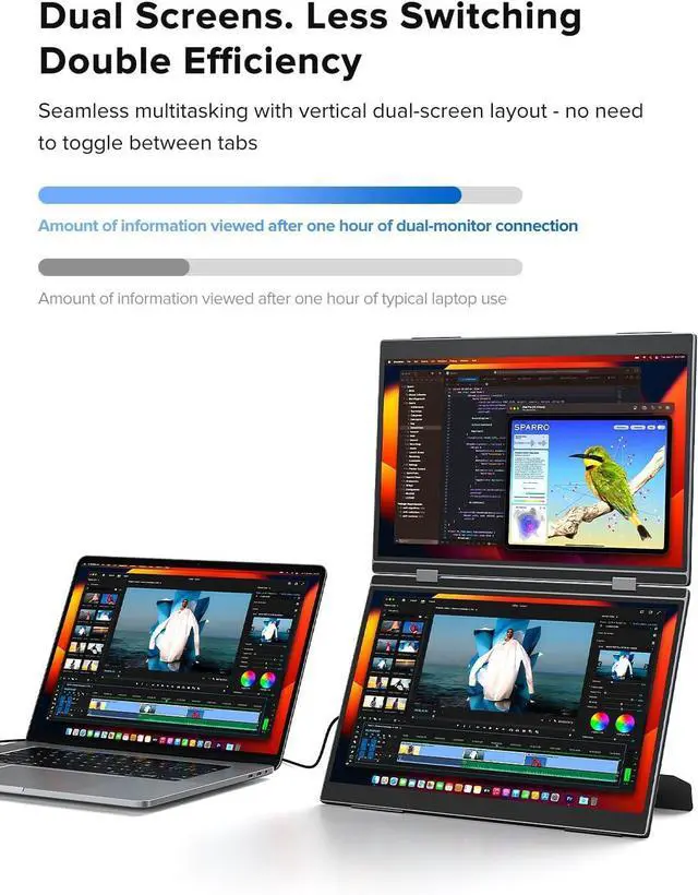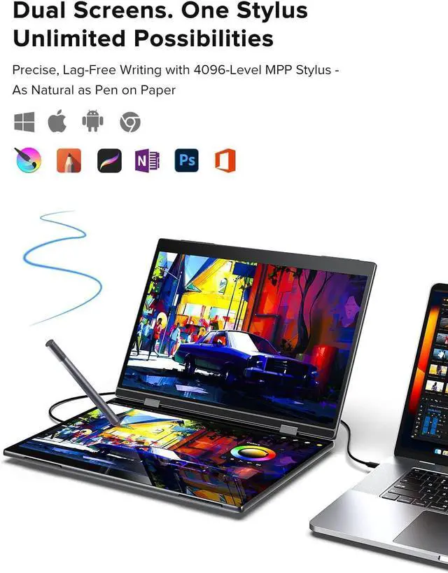 Adopting the latest one-line dual-screen setup, there is no need to install a driver.