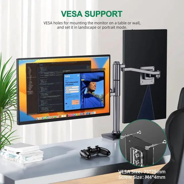 Smart Cover & VESA SupportUPERFECT has customized a stronger suction smart cover for this 18.5-inch monitor, that doubles as a stand and provides excellent protection for the large external monitor. The standard 75x75mm VESA holes give you plenty of options for mounting your portable second monitor on any wall or desk.
