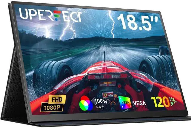 Lightweight & Thin Frame-LessDifferent from the heavy large-screen PC monitor, the UPERFECT 18.5-inch travel monitor balances large-screen and portable, realizing technological innovation. Net weight 2.6lb, all-aluminum alloy frame with 12mm thickness, three-sided 4mm narrow frame design, minimum bezel, and seamless views keep you focused on your work.