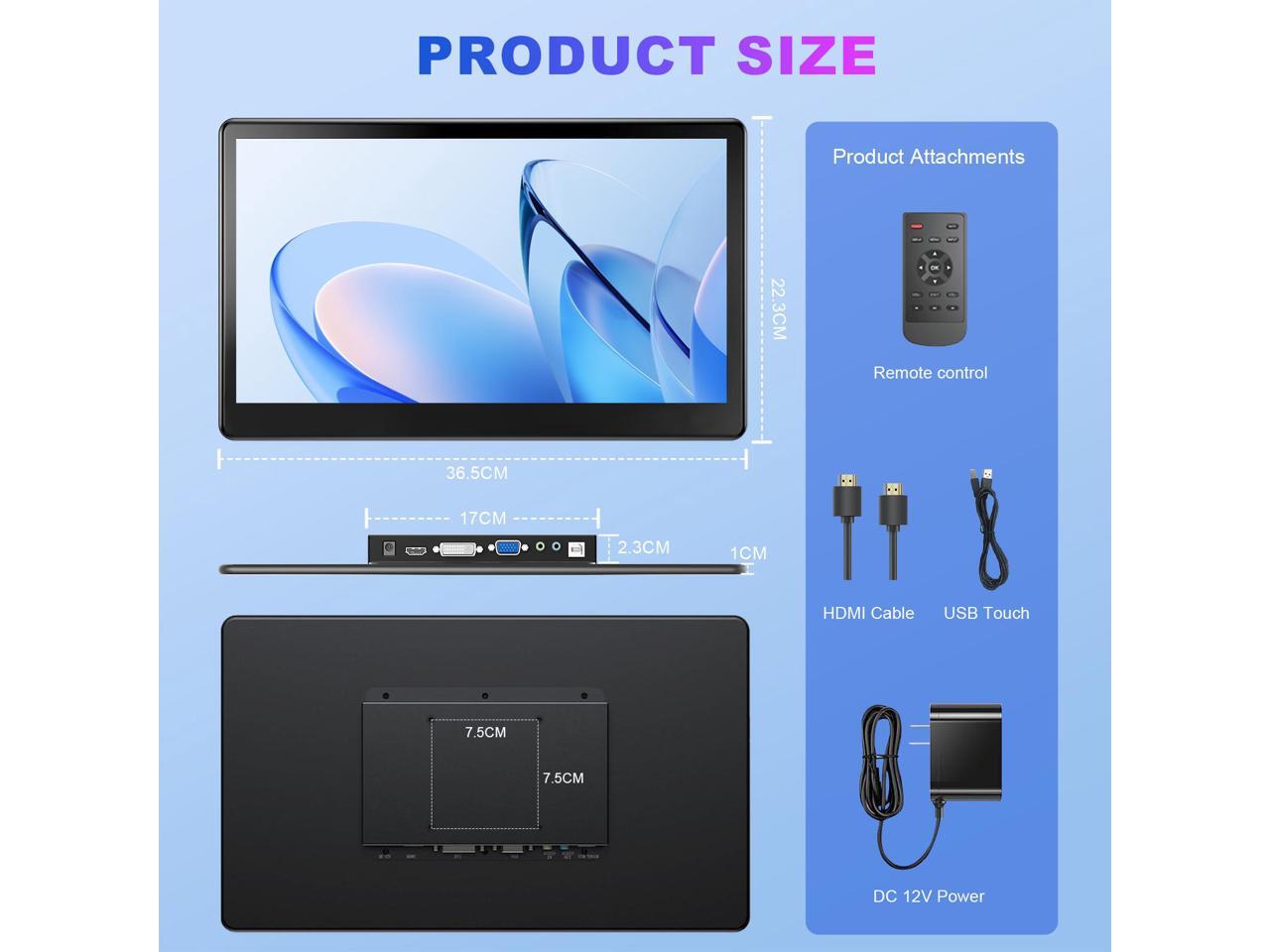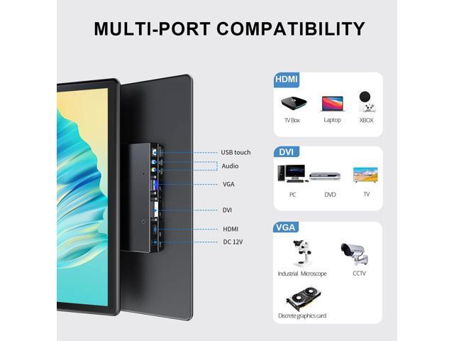 Unew 15.6 inch Touchscreen Monitor 1080P IPS Screen Built-in Speakers Industrial with 75*75mm VESA HDMI DVI VGA For Office Game Second Monitor Laptop PC Phone PS4 PS5 Xbox Switch