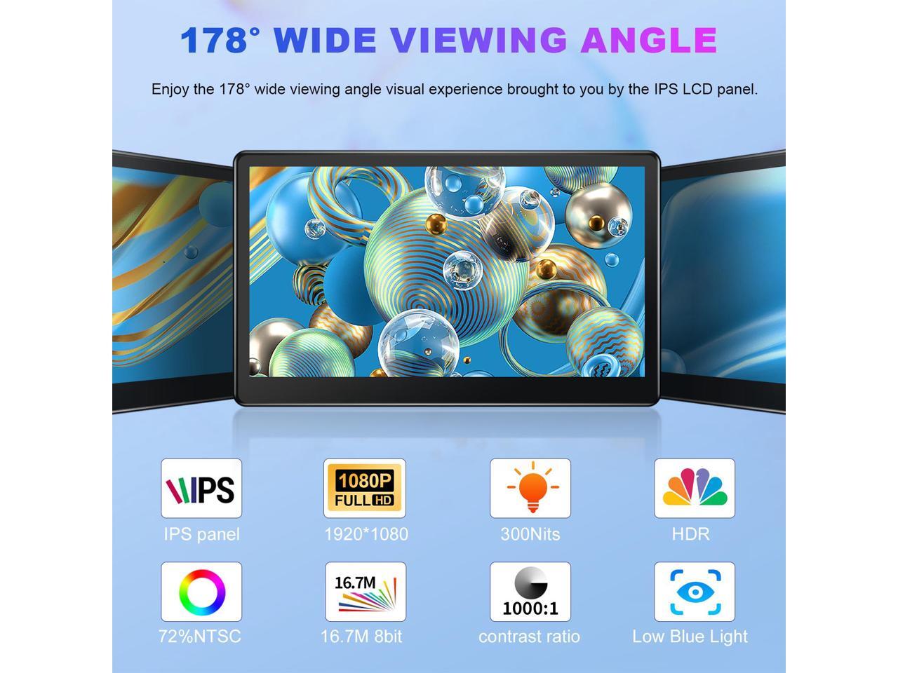- With 15.6-inch 1920 x 1080P FHD IPS panel with high-performance display chip, support HDR, 100% SRGB color gamut, 178° wide viewing angle, 1000:1 contrast ratio, 300dc/ brightness configuration, laptop monitor provides clear, vivid images and details for an immersive viewing experience.