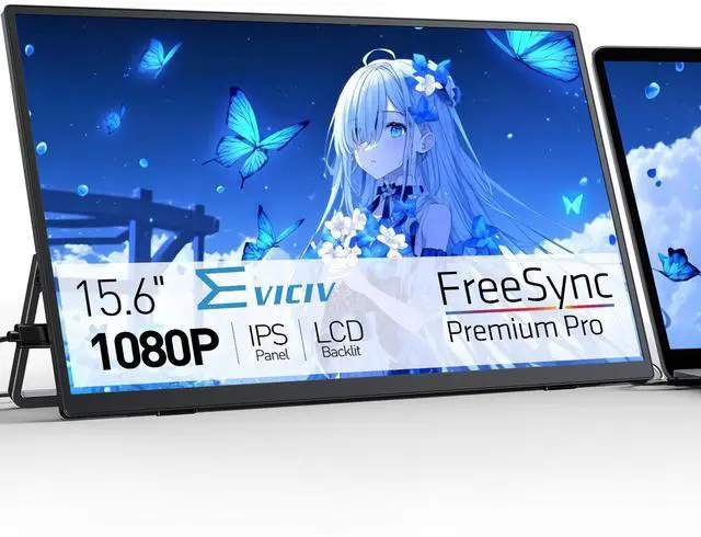 EVICIV 15.6-Inch Portable Monitor with HDMI, USB-C, USB-A, Full HD 1920x1080, IPS Panel, and Adjustable Stand for Laptops & Smartphones