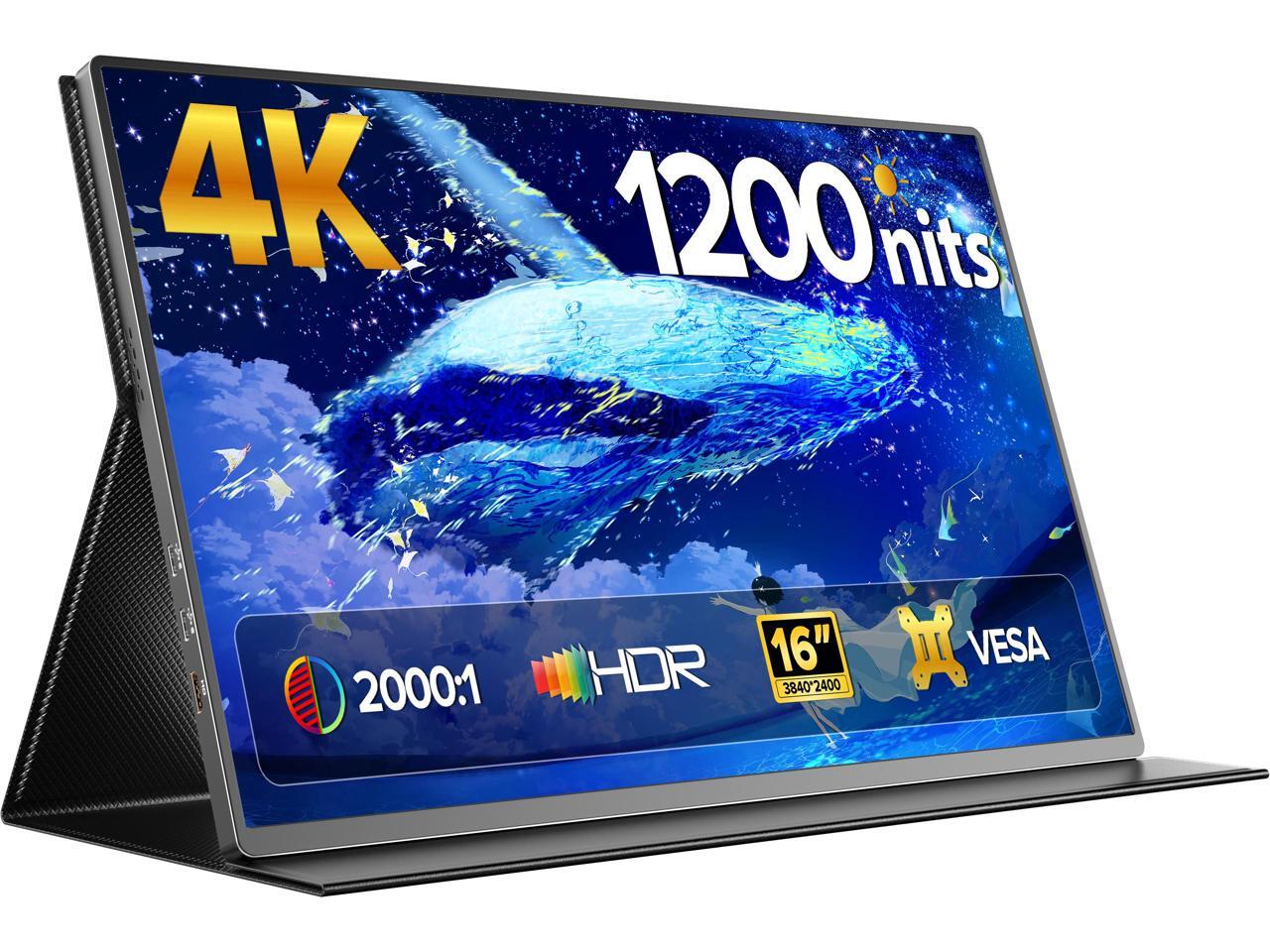 EVICIV 16" 4K Portable Monitor, 3840x2400 UHD, 1200 Nits High Brightness, 1ms Response, AMD FreeSync, USB-C/HDMI, with Smart Case & VESA, for Laptop, PC, Gaming Consoles